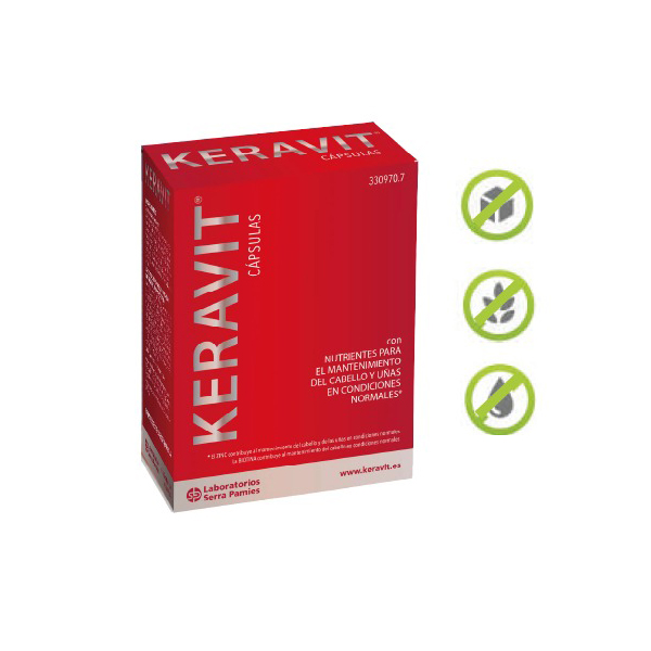 KERAVIT® Cápsulas es un complemento alimenticio rico en nutrientes para el mantenimiento del cabello y las uñas gracias a su fórmula exclusiva. Apto para vegetarianos y veganos.